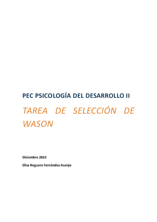 He publicado nuevos pec de 3º Psicología del Desarrollo II: PEC-PS-Desarrollo-II-Tarea-Seleccion-de-Wason-curso-23.24.pdf