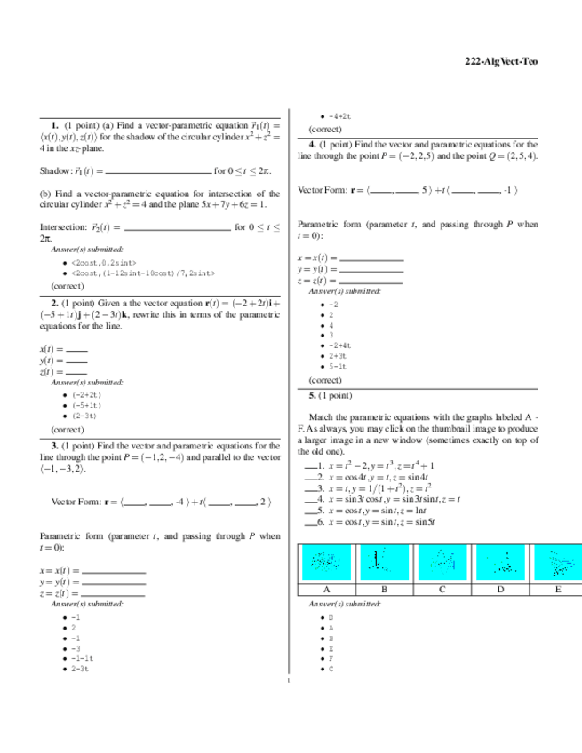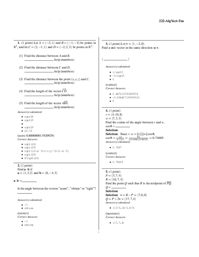 He publicado nuevos ejercicios de 2º Álgebra vectorial: Webwork Algebra