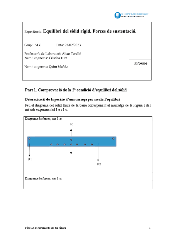 He publicado nuevos practicas de 1º Física I: Fonaments de Mecànica: Practica-1-Equilibri-del-solid.pdf
