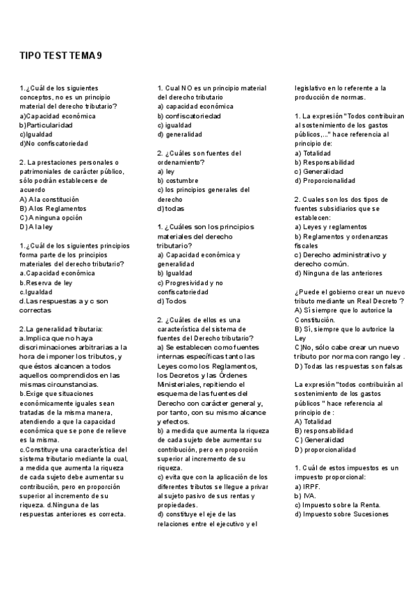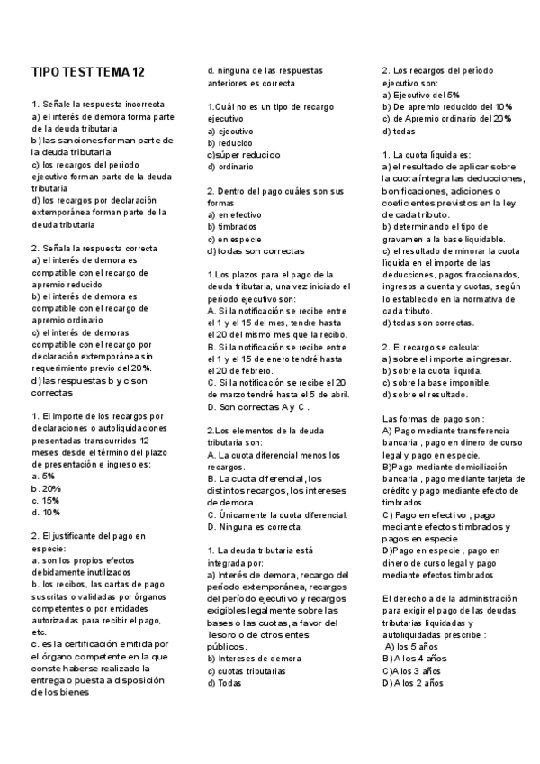 TIPO TEST DERECHO TRIBUTARIO