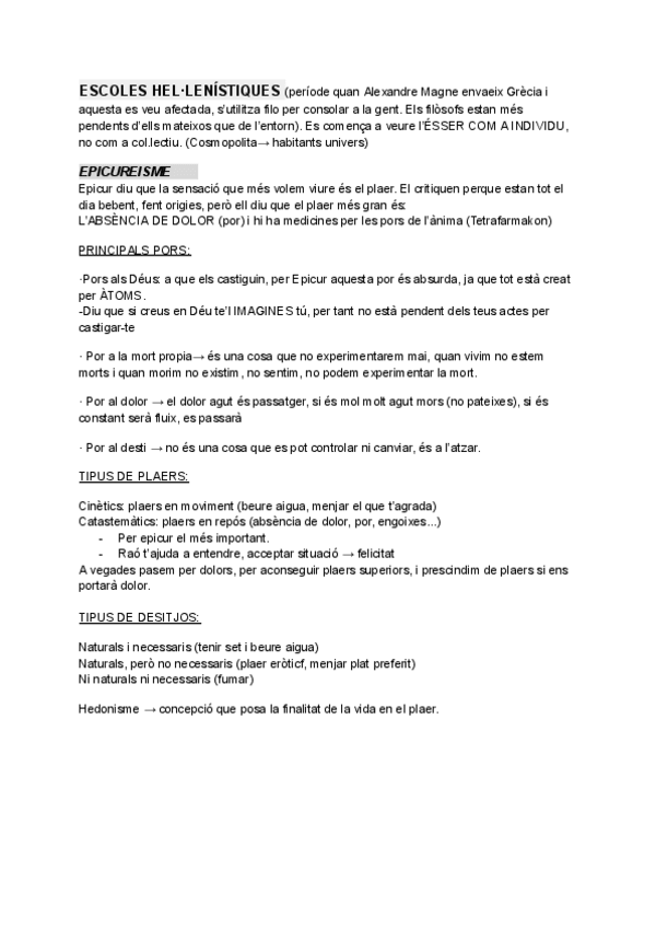 Resumen sobre ética, aristóteles, epicureismo, cinismo y escepticismo, estoicismo. Sobre la filosofía política, maquiavel.