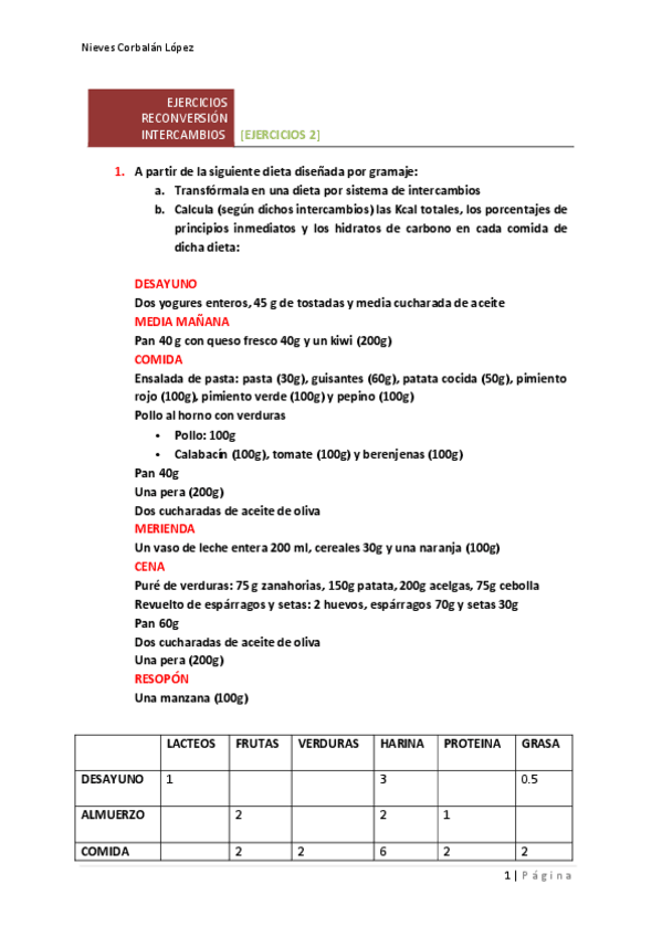 He publicado nuevos ejercicios de Dietoterapia: Dietas resueltas con correcciones