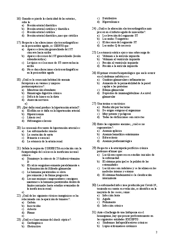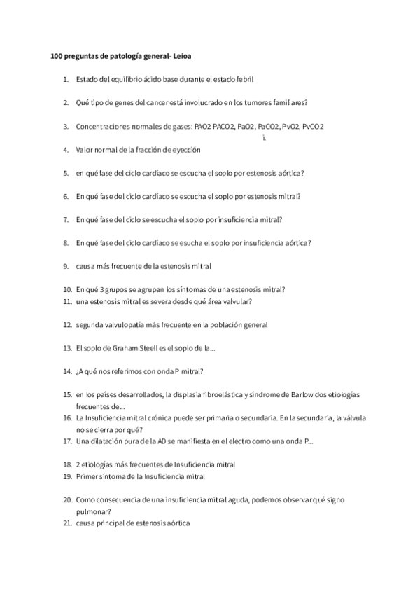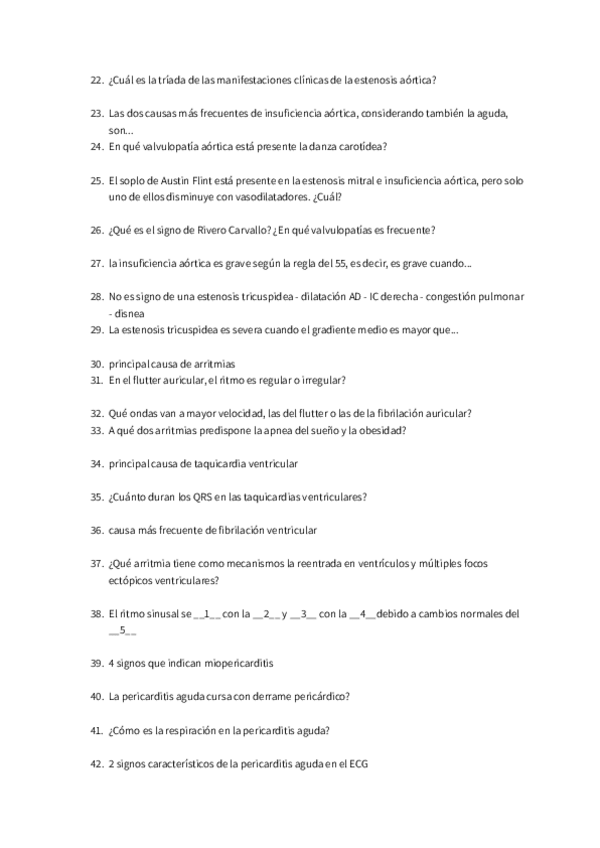 Preguntas cortas y de test sobre los bloques de Hemato, Cardio, Respiratorio y Renal sacadas del temario de la asignatura