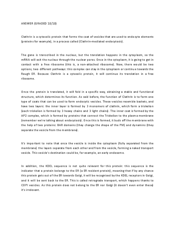 Examen parcial de biología celular con respuestas evaluado con nota de 10