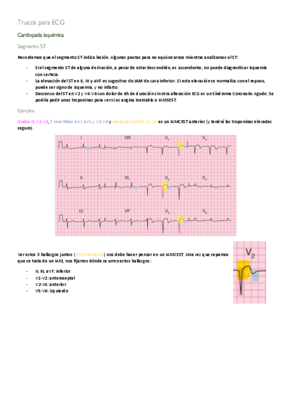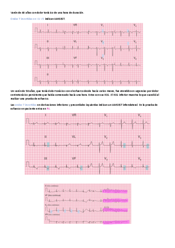 Ejemplos de ECG resaltados y explicados de cardiopatía isquémica y TEP