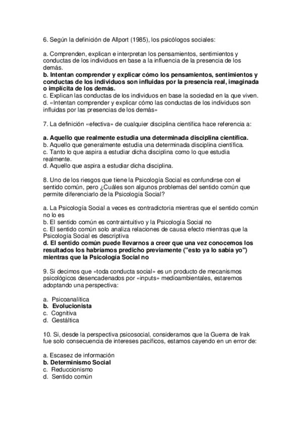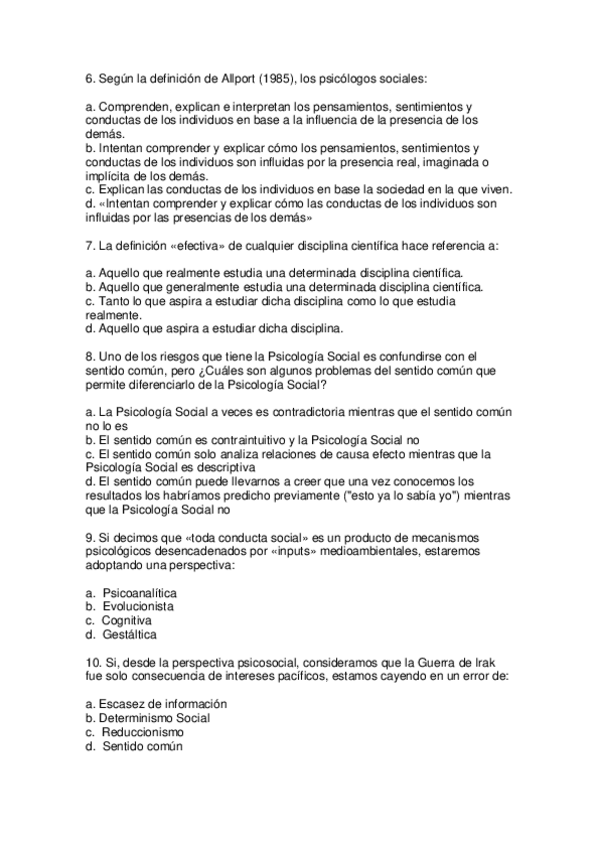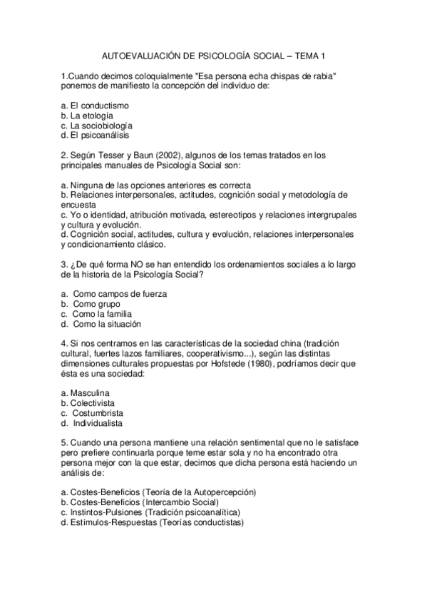 AUTOEVALUACIÓN DE PSICOLOGÍA SOCIAL, SIN RESPUESTA PARA ESTUDIAR EXAMEN FINAL