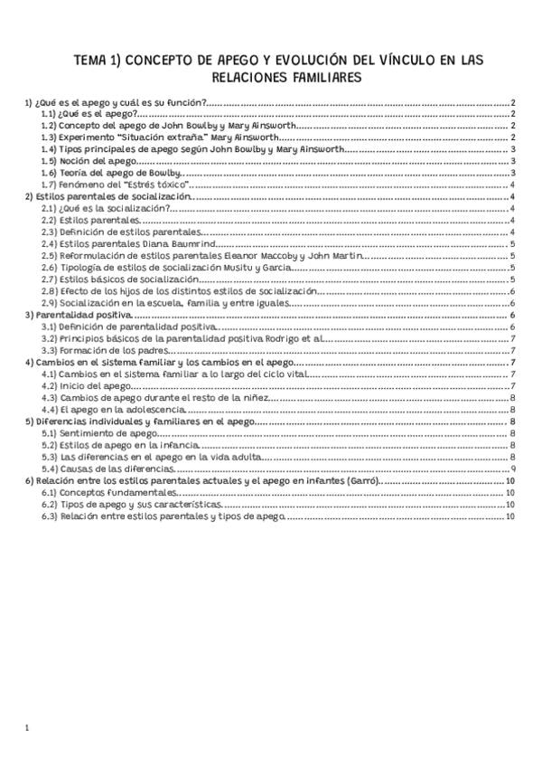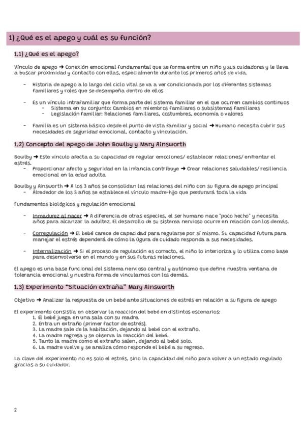 Tema 1 de vínculo y trastornos emocionales dividido por apartados. Posibles preguntas de desarrollo del examen. Incluida información de vídeos y lecturas