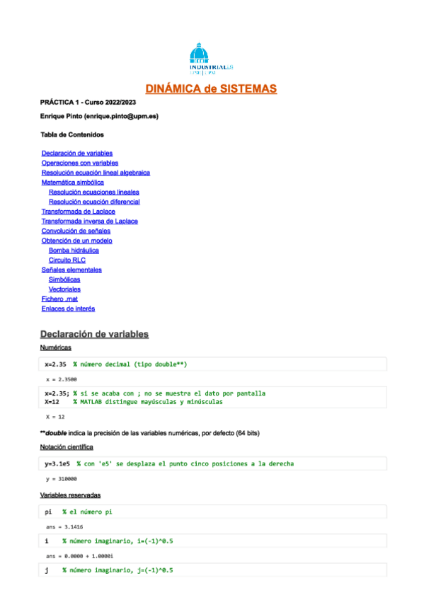 He publicado nuevos practicas de 2º Dinámica de Sistemas: Practica1Matlab.pdf