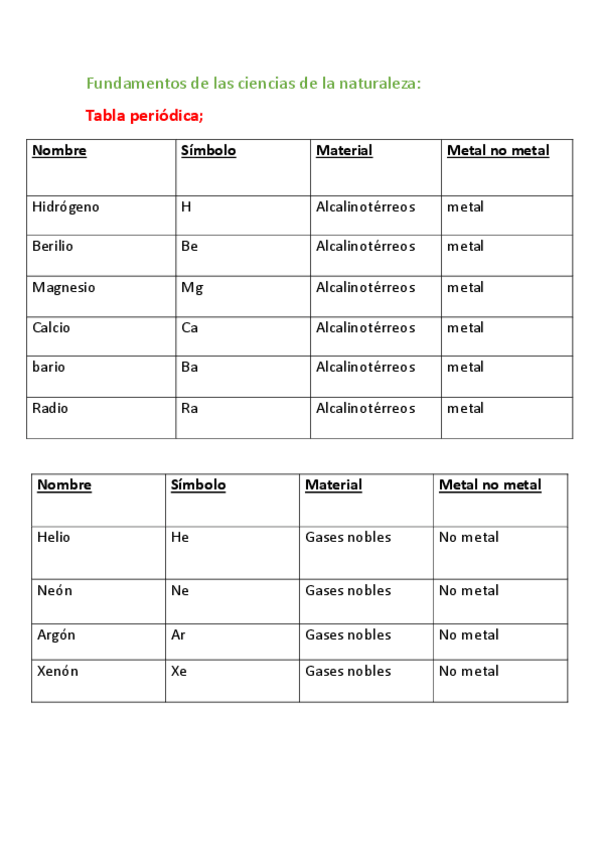 He publicado nuevos apuntes de 1º Fundamentos de las Ciencias de la Naturaleza: Elementos Tabla Periodica