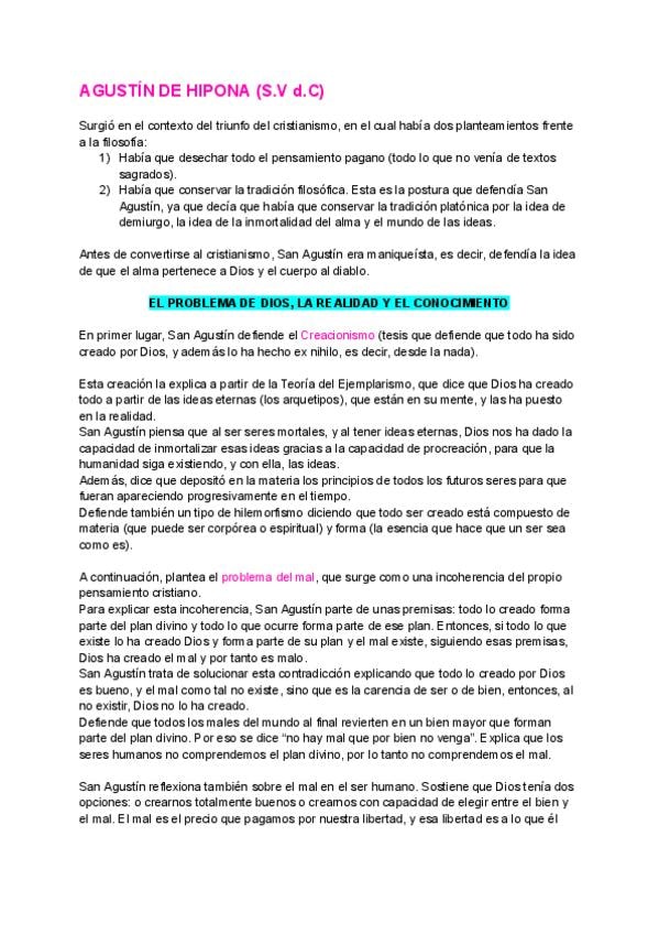 He publicado nuevos apuntes de 2º Historia de la Filosofía: Pensamiento de San Agustín.pdf