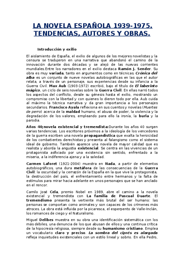 He publicado nuevos apuntes de Lengua Castellana y Literatura II: La-novela-espanola-de-1939-a-1974.-Tendencias-autores-y-obras-principales.docx