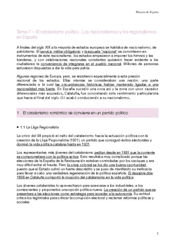 El catalanismo político. Los nacionalismos y los regionalismos en España
