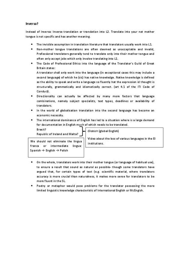 He publicado nuevos apuntes de 2º Traducción inversa 1ª lengua extranjera: Inglés: intro.pdf