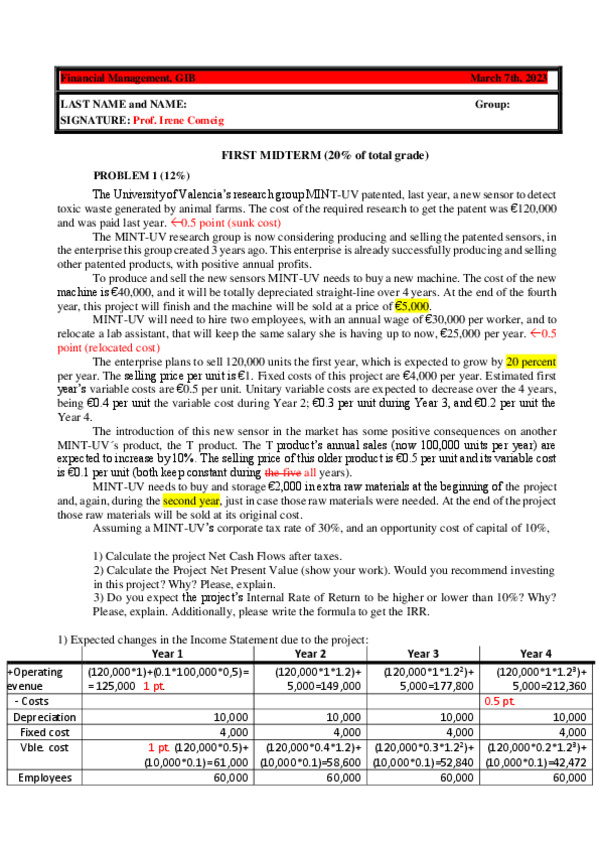 He publicado nuevos examenes de 2º Dirección Financiera: 23 A and B Midterm Ar-Solution