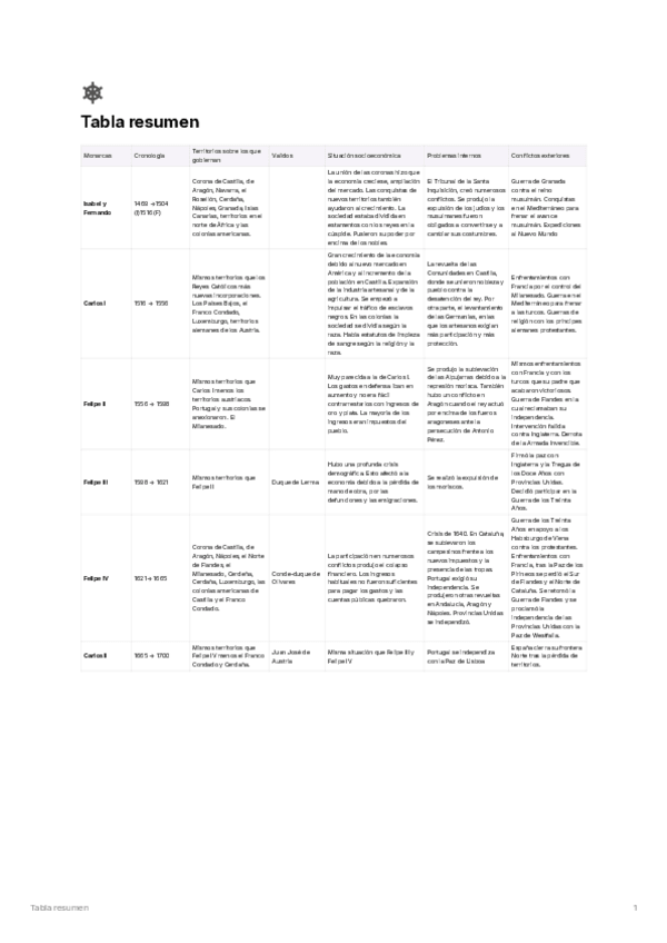 He publicado nuevos apuntes de 2º Historia de España: Tablas resumen historia
