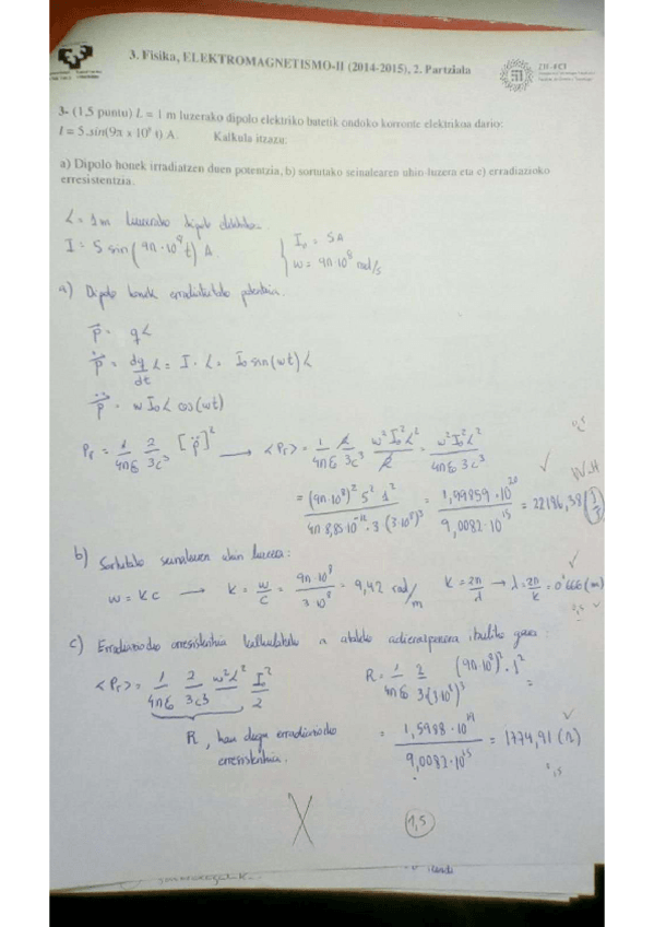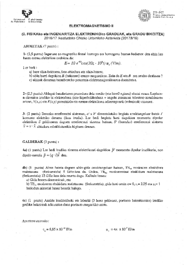 He publicado nuevos examenes de 3º Electromagnetismo II: EXAMEN-EII201617UrtarrilekoAzterketaeginda-AZKEN-ARIKETA.pdf