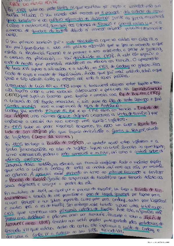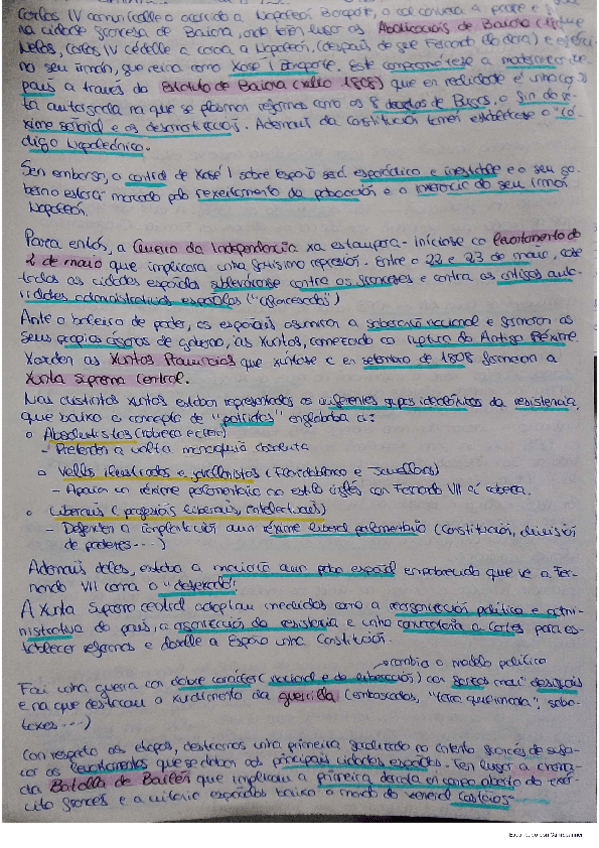 Contextualízase a crise da monarquía absoluta española no reinado de Carlos IV,así como o impacto da Revolución Francesa sobre o mesmo,o proceso de abdicacións de Baiona e as repercusións da ocupación napoleónica nas dúas vertentes(política/económica).