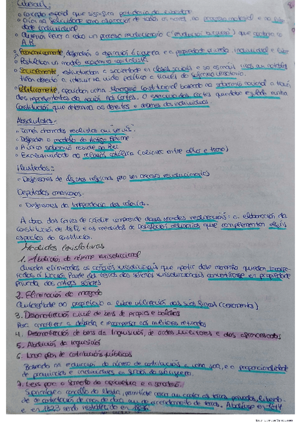 Plásmanse as características xerais do liberalismo, distinguindo as dúas correntes básicas dentro da ideoloxía liberal;relaciónanse eses principios ideolóxicos coas diferentes constitucións e identifícanse os principais líderes das familias políticas.
