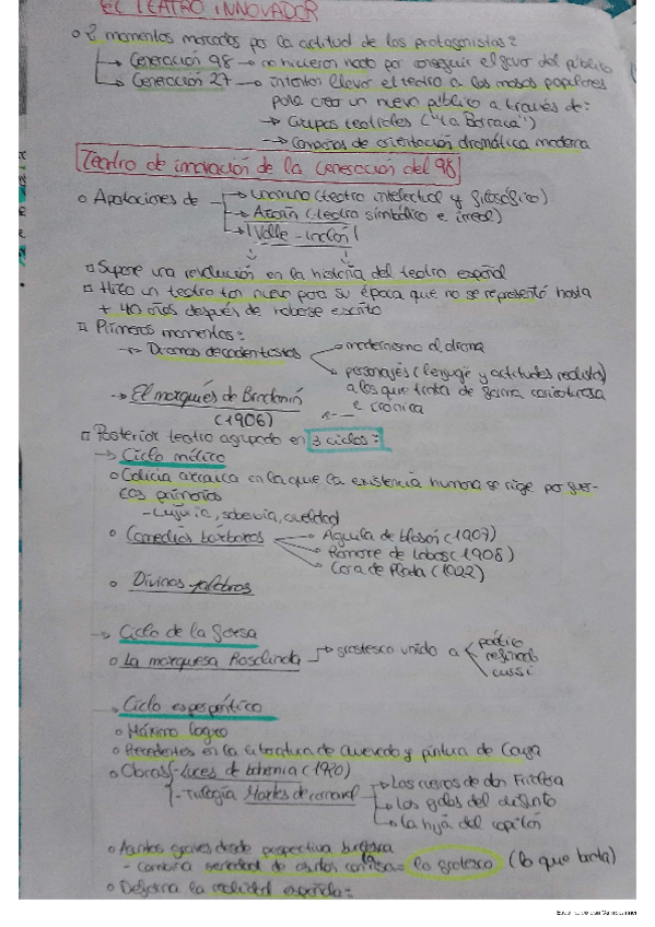 Se contextualiza el tema en la época y se dan los rasgos principales del teatro de la Generación del 98 y el innovador del 27.Posteriormente se profundiza en las obras de Valle Inclán y Lorca.