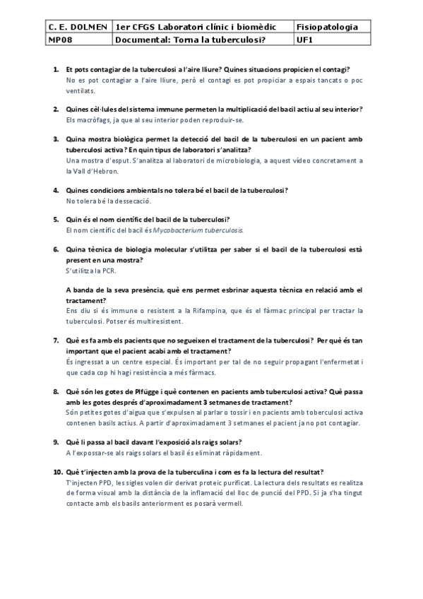 He publicado nuevos ejercicios de Fisiopatología general: 205820210205exerciciDOCUMENTALTornalaTuberculosi.pdf