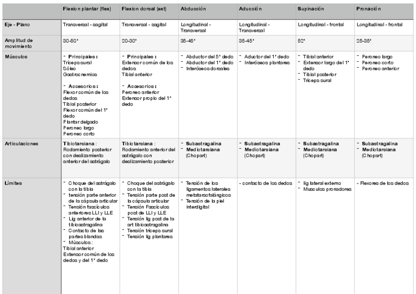 He publicado nuevos apuntes de 1º Terapia Manual Básica: Tabla fisiologia articular MMII