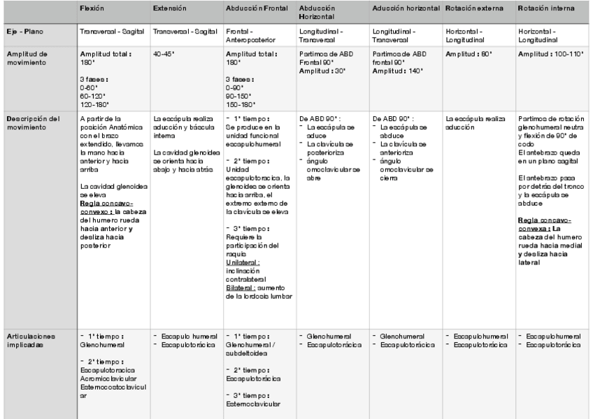 Tablas fisiologia articular MMSS