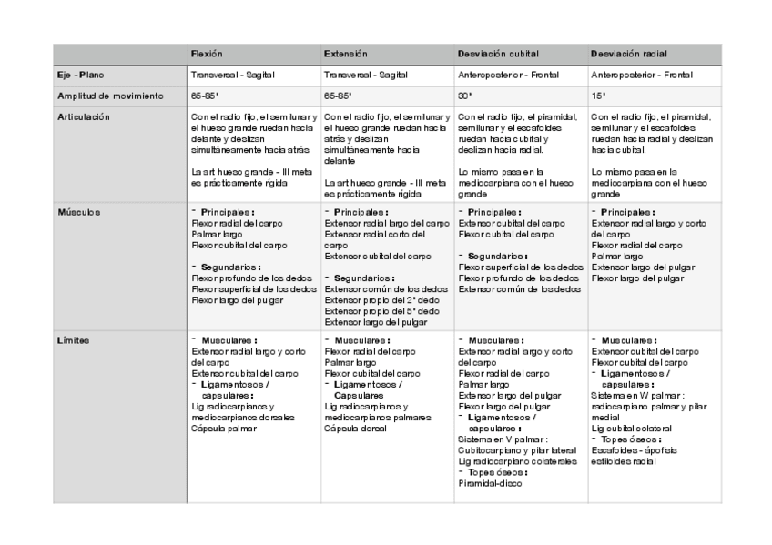 He publicado nuevos apuntes de 1º Terapia Manual Básica: Tablas fisiologia articular MMSS