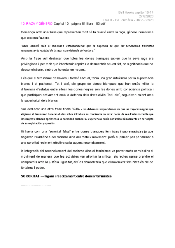 He publicado nuevos apuntes de 1º Sociedad, Familia y Educación: Presentació i intervenció Bell hooks cap 10-14 SFE.pdf