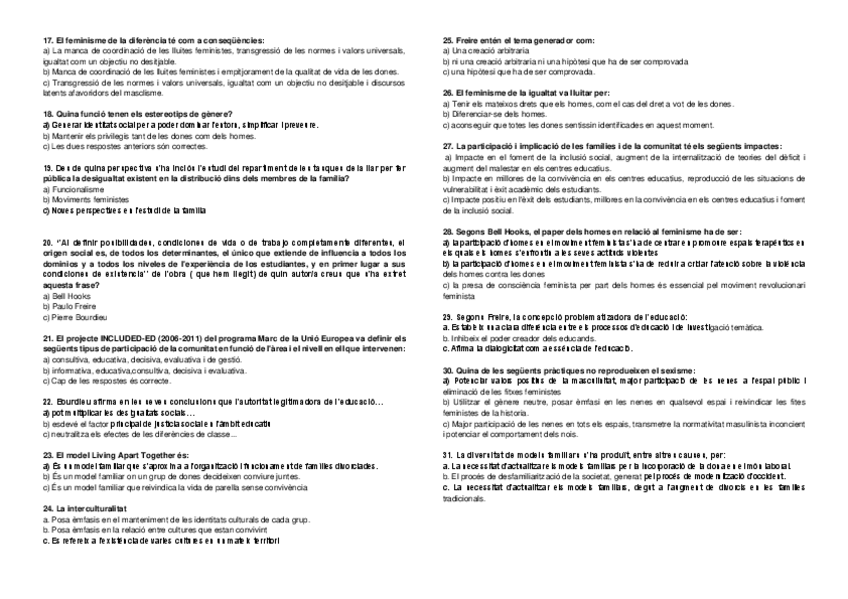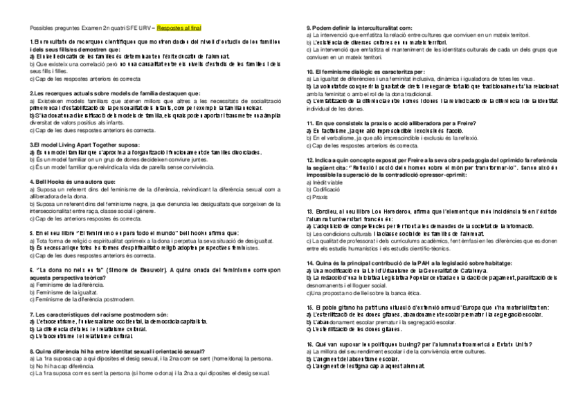 He publicado nuevos examenes de 1º Sociedad, Familia y Educación: Preguntes examen 2n quatri SFE.pdf