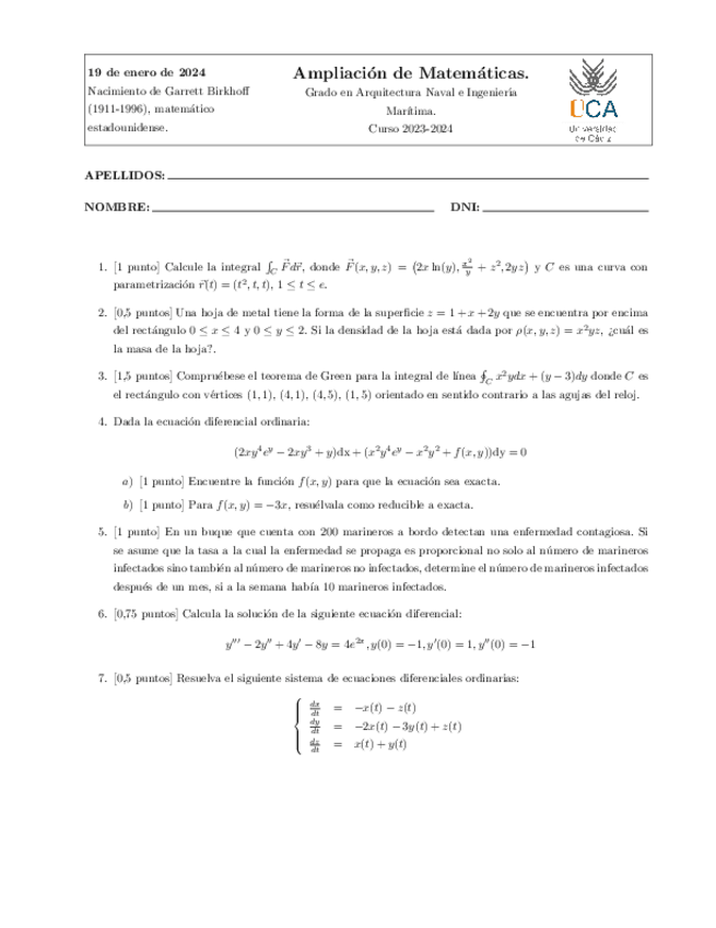 He publicado nuevos examenes de 2º Ampliación de Matemáticas: 2024-Febrero.pdf