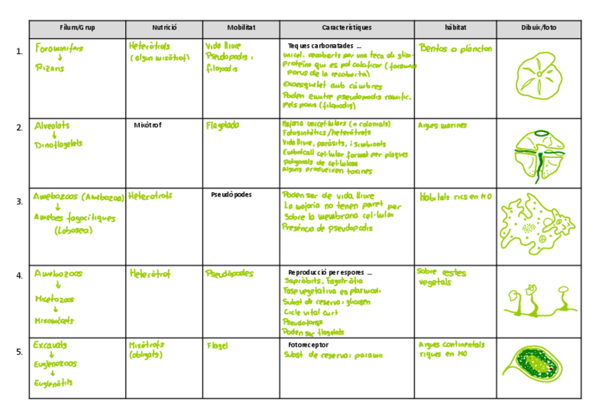 Activitat grup mitjà sobre els protists, serveix també com a resum del tema