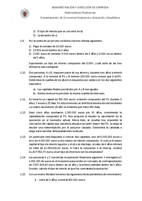 He publicado nuevos ejercicios de 2º Matemáticas Financieras: Ejercicios-Mates-Financieras-Parte-9.pdf