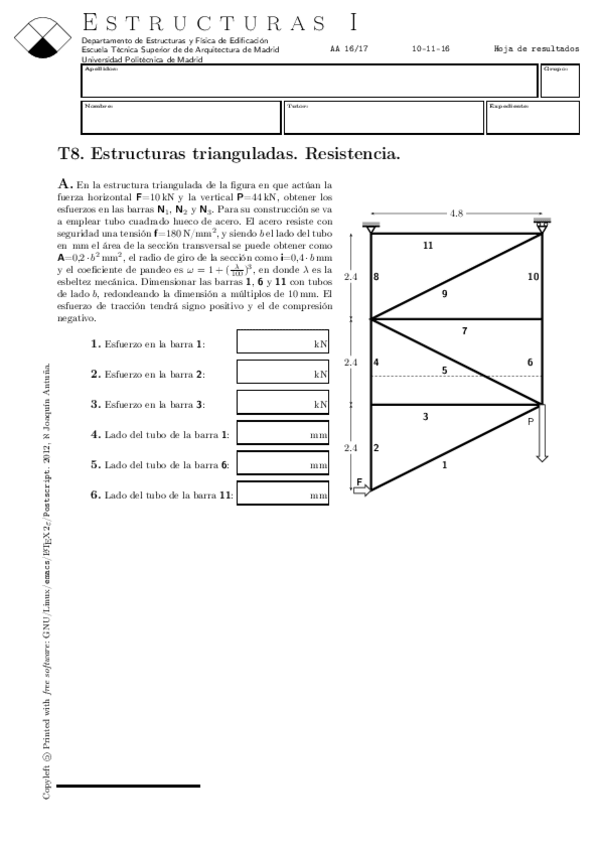 He publicado nuevos test de 2º Estructuras I: TEST-ESTRUCTURAS-TRIANGULADAS5-SOLUCION.pdf