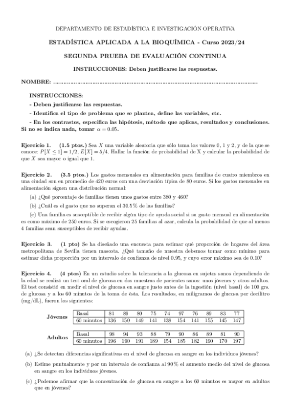 He publicado nuevos examenes de 1º Estadística Aplicada a la Bioquímica: Segundo-parcial-2324.pdf