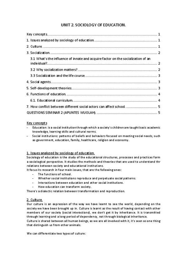 He publicado nuevos apuntes de 1º Sociología de la Educación: Sociology of education
