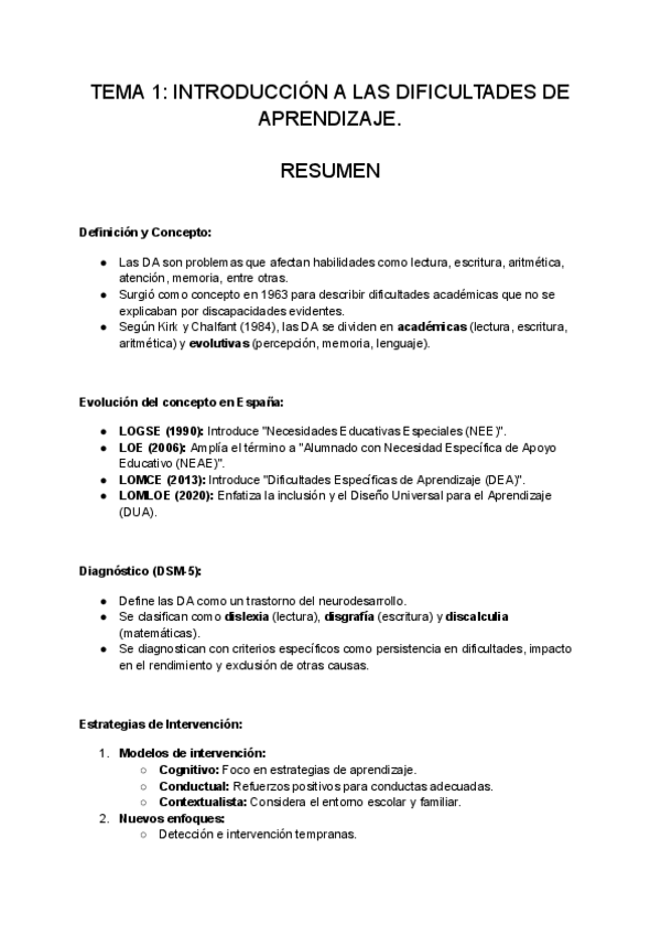 RESÚMENES TEMARIO DE DIFICULTADES DEL APRENDIZAJE