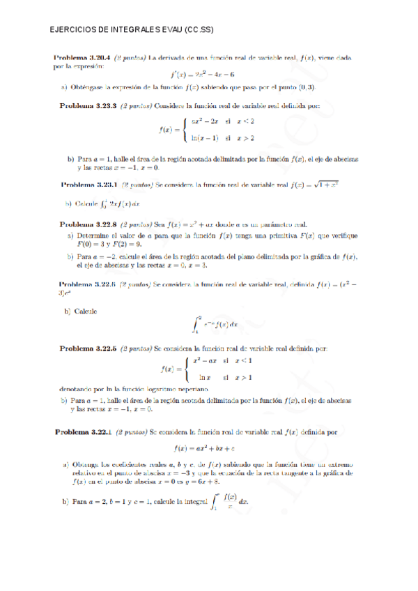 He publicado nuevos ejercicios de Matemáticas aplicadas a las Ciencias Sociales II: Ejercicios-Integrales-EVAU-CC.SS.pdf