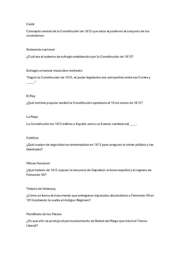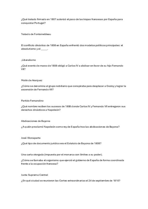 Macroresumen con fechas importantes. Preguntas cortas y respuestas
