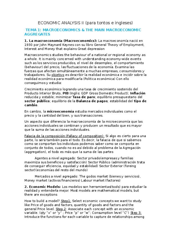 Apuntes de economic analysis II en spaninglish para los que se le dan mal el inglés pero han sufrido el castigo de meterse en bilingüe. Suerte camaradas. Good luck camarons.