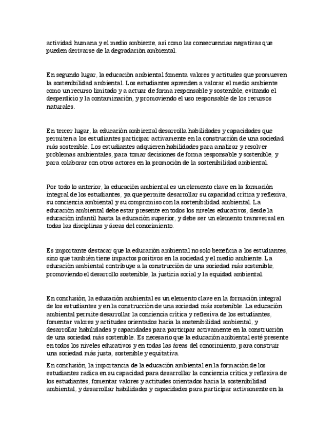 La educación ambiental es una herramienta fundamental para la formación de los estudiantes en valores y actitudes orientados hacia la protección y el cuidado del medio ambiente.