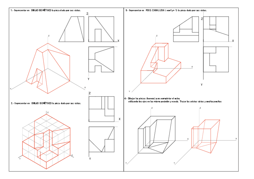 perspectivas, acotación y cortes ejercicios y soluciones