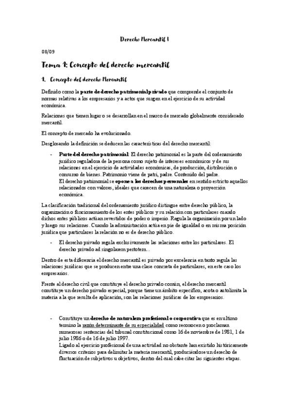 Derecho Mercantil I Primer Parcial Temas 1-8 Apuntes de clase Profesor: Enrique Barrero
