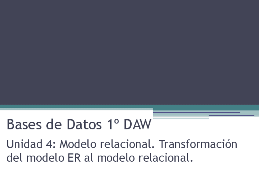 He publicado nuevos apuntes de Gestión de bases de datos: Unidad-4-Modelo-relacional.-Paso-del-modelo-ER-al-modelo-relacional.pdf