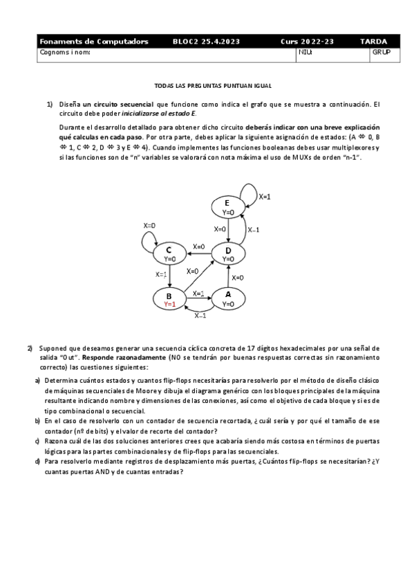 He publicado nuevos examenes de 1º Fonaments dels Computadors: 2022/23 bloc 1 (PDFs i solucions)