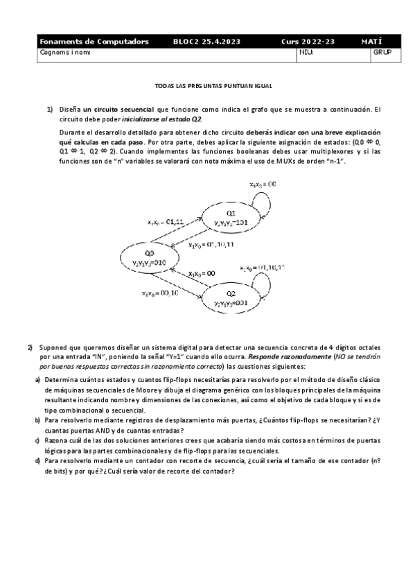 He publicado nuevos examenes de 1º Fonaments dels Computadors: 2022/23 bloc 3 (PDFs i solucions)