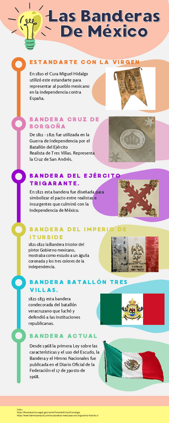 Infografía Canva sobre 6 banderas de México y sus relaciones con mucha info. sobre cada una.