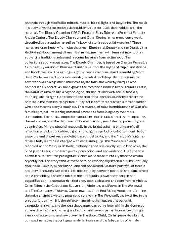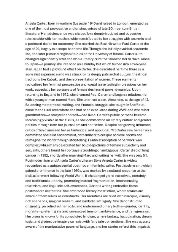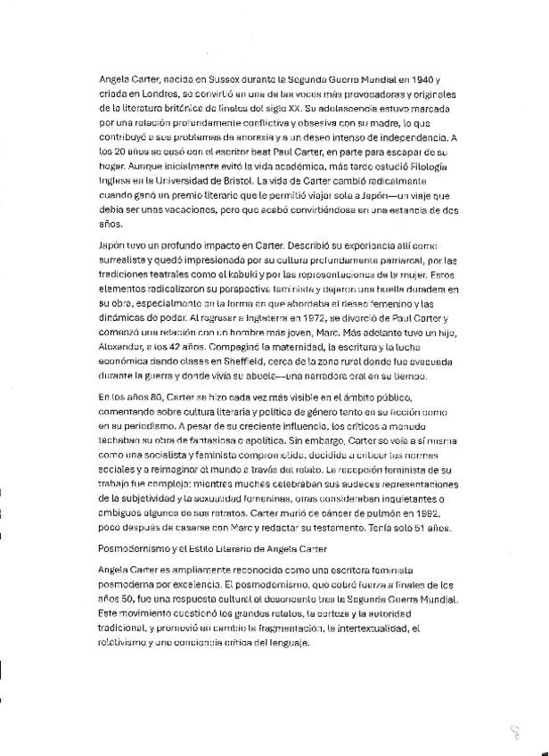 apuntes sobre Angela Carter en inglés, también está la versión en castellano