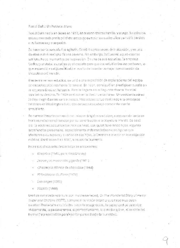 apuntes en castellano sobre Roald Dahl, también está la versión en inglés