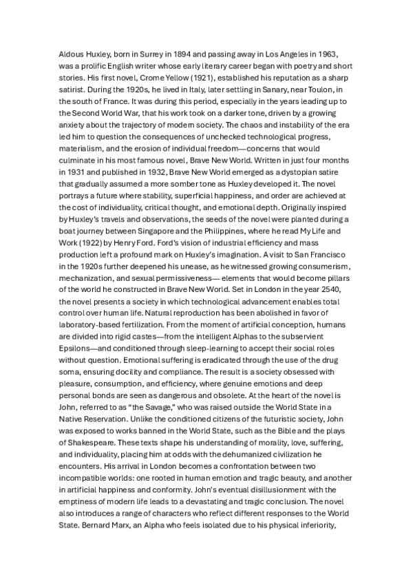 apuntes sobre Aldous Huxley en inglés, también está la versión en castellano