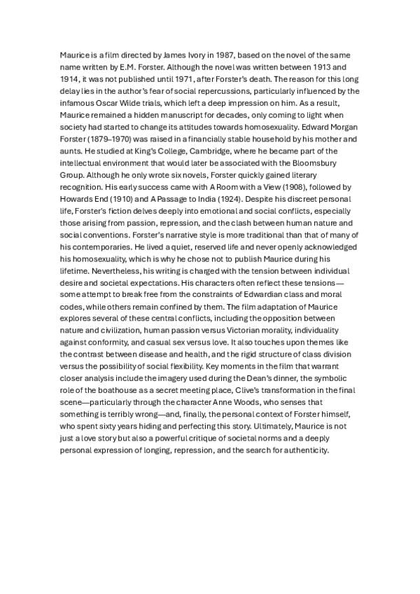 apuntes sobre Maurice y EM Forster en inglés, también está la versión en castellano